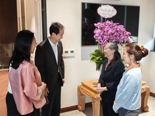 2026年2月6日,驻越南大使何炜和夫人孙畅看望前越共中央总书记阮富仲遗孀吴氏敏。