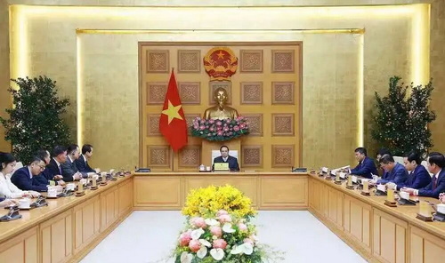 2026年2月8日,驻越南大使何炜拜会越南政府总理范明政。越南相关部委及北部边境省份负责人出席。