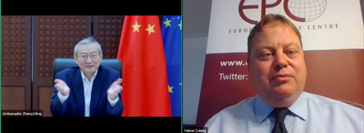 2020年9月17日,驻欧盟使团团长张明大使出席欧洲政策中心(EPC)举办的“60分钟吹风会”(Sixty Minute Briefing)系列活动之“中欧关系的前景与挑战”,并发表主旨演讲。张明大使全面介绍了中德欧领导人会晤成果,并就如何落实领导人共识、推进未来中欧关系发展提出建议。吹风会由EPC负责人、首席经济学家祖立格(Fabian Zuleeg)主持。实录如下:
