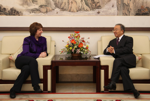 2012年1月17日,正在印度举行中印边界问题特别代表第十五次会晤的国务委员戴秉国会见了同时在印度访问的欧盟外交和安全政策高级代表阿什顿,双方就中欧关系和共同关心的国际问题交换了意见。