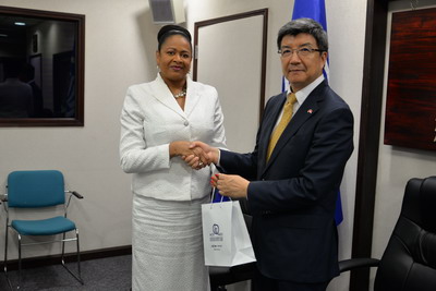 2019年5月23日,驻特立尼达和多巴哥大使宋昱旻会见加勒比国家联盟秘书长琼·苏默。