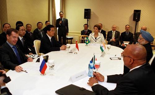 2011年11月3日,国家主席胡锦涛在戛纳出席了金砖国家领导人会晤,同与会的巴西总统罗塞夫、俄罗斯总统梅德韦杰夫、印度总理辛格、南非总统祖马等就金砖国家合作和二十国集团领导人戛纳峰会相关问题交换了意见。