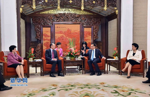 2014年7月8日上午,国务院总理李克强在中南海紫光阁会见世界银行行长金墉和世界卫生组织总干事陈冯富珍,就推进中国医药卫生事业改革与发展交换意见。