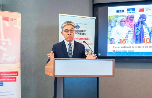 2025年10月16日,驻塞内加尔大使李志刚出席塞内加尔“中国—联合国教科文组织中国信托基金三期项目”(CFIT Ⅲ)结项仪式。联合国教科文组织西非办主任桑加,塞高教部合作司长蒂亚姆,国民议会教育委员会主席盖耶以及塞高校师生代表等200余人参加。