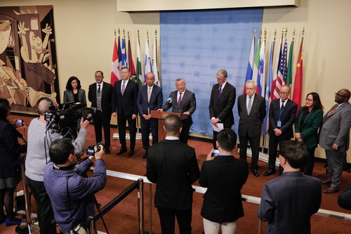 会后,傅聪大使和达尼萨大使向媒体宣读“和平之友”小组联合声明,呼吁早日停火、避免向冲突当事方扩散武器、加强人道援助和对平民的保护,对单边制裁造成的负面影响表示关切,鼓励相关各方通过谈判达成政治解决方案,支持联合国在促进外交努力方面发挥作用,小组将继续为和平解决冲突发挥建设性作用。