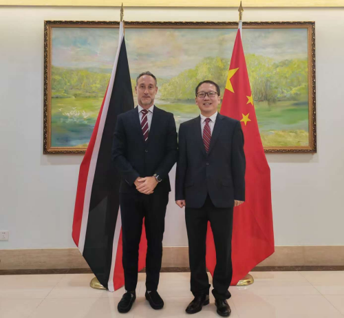 2025年11月11日,驻特立尼达和多巴哥大使任洪岩应约会见联合国开发计划署驻特多代表布兰科,双方就促进地区可持续发展和经济多元化相关举措交换意见。