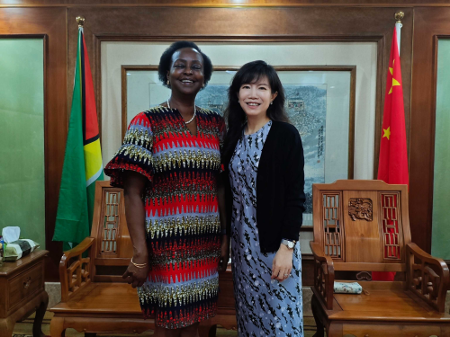 2026年3月4日,在国际妇女节到来之际,驻圭亚那大使杨扬会见联合国驻圭亚那协调员卡莫,双方就女性赋能合作进行交流。双方表示将以此为契机,落实习近平主席2025年全球妇女峰会主旨讲话精神,围绕联合国2030年可持续发展议程加强协作,推动相关领域取得更多务实成果。