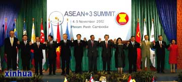 2002年11月4日,国务院总理朱镕基出席了第六次东盟与中日韩领导人会议并发表讲话。