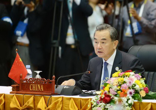 当地时间2016年7月26日,外交部长王毅出席在老挝万象举行的东盟与中日韩(10+3)外长会。