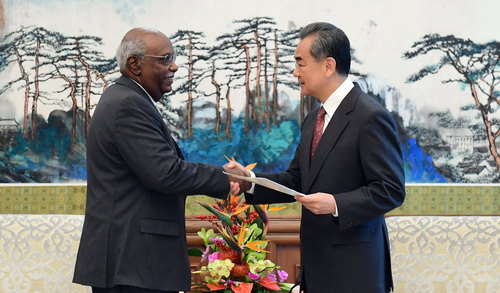 2018年12月13日,国务委员兼外长王毅在北京会见非盟首任驻华代表奧斯曼并接受其递交委任书。