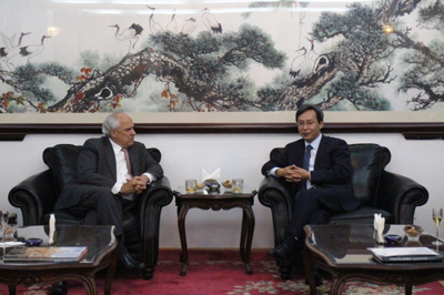 2016年4月5日,驻厄瓜多尔大使王玉林在使馆会见南美国家联盟秘书长桑佩尔。王大使表示,近年来中拉整体合作取得重大进展,南美国家联盟作为涵盖所有12个南美国家的地区组织,发挥了积极作用。中国政府重视发展与南美国家关系,愿进一步加强与南美国家联盟的交流合作,推动中拉关系再上台阶。桑佩尔表示,南美国家联盟愿推动南美国家加强与中国在各领域务实合作,促进南南合作取得新进展。