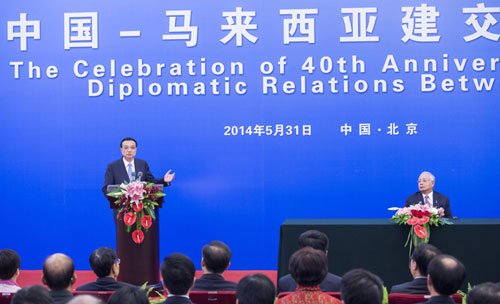 2014年5月31日,国务院总理李克强在中国同马来西亚建立外交关系40周年庆祝大会上发表题为《开创中马关系更加美好的明天》的讲话。讲话全文如下: