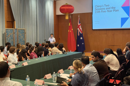 总领馆青年外交官围绕“十五五”规划、中澳人文交流、中国对外开放做分享。现场气氛热烈、互动踊跃。