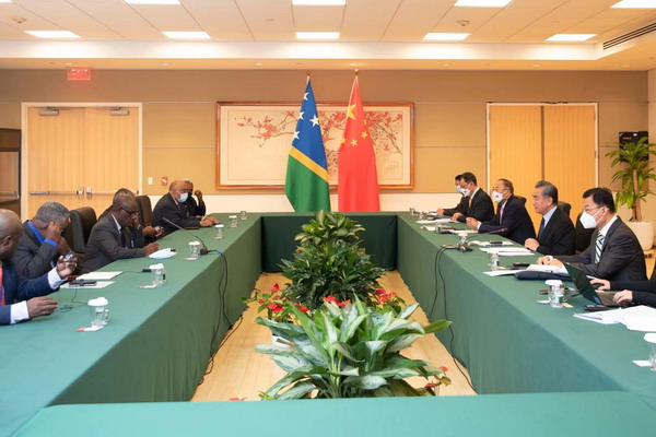 On September 20, 2022 local time, State Councilor and Foreign Minister Wang Yi met with Foreign Minister of Solomon Islands Jeremiah Manele on the sidelines of the United Nations General Assembly in New York.