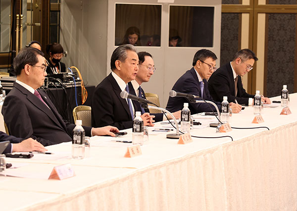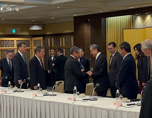 On March 23, 2025 local time, Member of the Political Bureau of the CPC Central Committee and Director of the Office of the Central Commission for Foreign Affairs Wang Yi held a group meeting with the representatives of seven Japan-China friendship groups in Tokyo. The meeting was attended by Chairman of the Japan-China Friendship Parliamentarians' Union and Secretary-General of Japan's ruling Liberal Democratic Party Hiroshi Moriyama, President of the Japanese Association for the Promotion of International Trade Yohei Kono, as well as leaders of the Japan-China Friendship Association, Japan-China Cultural Exchange Association, Japan-China Economic Association, Japan-China Association and Japan-China Friendship Center, among others.