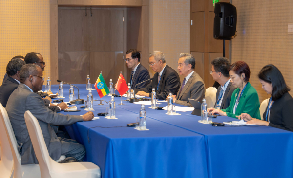 On April 28, 2025 local time, Member of the Political Bureau of the CPC Central Committee and Foreign Minister Wang Yi met with Ethiopian Foreign Minister Gedion Timothewos in Rio de Janeiro.