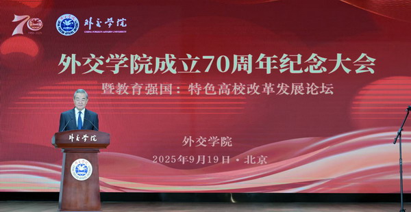 On September 19, 2025, China Foreign Affairs University (CFAU) held a ceremony commemorating its 70th founding anniversary in Beijing. Member of the Political Bureau of the CPC Central Committee and Foreign Minister Wang Yi attended the event and delivered a speech.