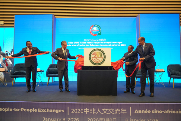 On January 8, 2026 local time, the launching ceremony of the 2026 China-Africa Year of People-to-People Exchanges was held at the African Union headquarters in Addis Ababa. Member of the Political Bureau of the CPC Central Committee and Foreign Minister Wang Yi attended the event, read out a congratulatory letter from President Xi Jinping and delivered a keynote speech. Foreign Minister Jean-Claude Gakosso of the Republic of the Congo, the African co-chair of the Forum on China-Africa Cooperation (FOCAC), Chairperson of the African Union (AU) Commission Mahmoud Ali Youssouf, and Ethiopian President Taye Atske-Selassie Amde successively addressed the ceremony. More than 200 participants attended the event, including senior officials from the AU Commission and AU institutions, diplomatic envoys from African countries to the AU, high-level representatives of the United Nations agencies, and government officials and representatives from various sectors of Ethiopia.