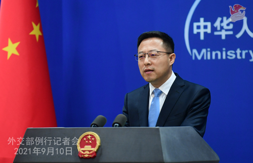 Zhao Lijian: Tomorrow marks the 20th anniversary of the 9/11 incident. In the past two decades, important progress has been made in international counter-terrorism cooperation. However, the situation remains complex and grave. Terrorism is a common scourge that afflicts the entire human society. To combat it is the shared responsibility of the international community. All countries must join forces for the same purpose, coordinate policies, give full play to the UN's central coordinating role in international counter-terrorism cooperation, attach importance to eradicating the breeding ground of terrorism, tackle prominent issues such as terrorists' abuse of new and emerging technologies, and also stay on high alert to terrorist forces' instigation of terrorist activities by taking advantage of COVID-19.
