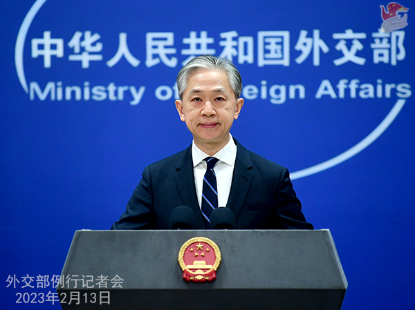 Wang Wenbin: We have made it clear time and again that the entry of the Chinese civilian unmanned airship into US airspace was a purely unintended, unexpected and isolated event caused by force majeure.