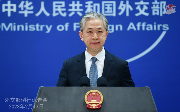 Wang Wenbin: There are existing norms in international law related to civil aircraft that are being practiced worldwide. Despite international law and customary practice, the US overreacted and abused the use of force by downing China’s unmanned civilian airship. US balloons have illegally flown over China’s airspace multiple times without China’s approval. The US is in no position to talk about “establishing a common global norms”. It should earnestly abide by international law and customary international practice.