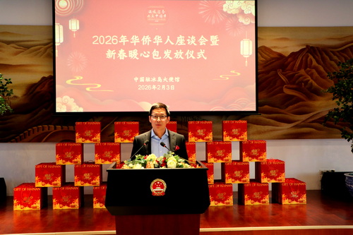 Embodying the heart-warming care of the motherland for overseas Chinese, the 2026 Spring Festival Packages were thoughtfully prepared by the Overseas Chinese Affairs Office of the State Council, the All-China Federation of Returned Overseas Chinese, the Overseas Chinese Affairs Office of Hainan Province, the Hainan Provincial Federation of Returned Overseas Chinese, and the Chinese Embassy in Iceland.
