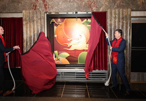 Chen Li and Xu Zhentao, Deputy Director General of the Beijing Municipal Bureau of Culture and Tourism, jointly unveiled the Year of the Horse window exhibition. On Chinese New Year’s Eve, the Empire State Building will again lit up in a resplendent “Chinese red”, extending New Year greetings to people across the globe and celebrating the arrival of the Year of the Horse.
