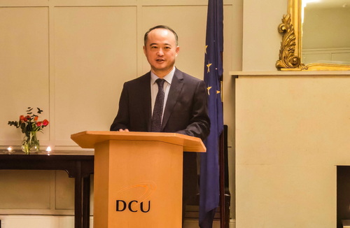 On 27 February, Ambassador Zhao Xiyuan attended the inauguration ceremony of the International College of Electronic Information Engineering jointly established by Dublin City University and Hangzhou Dianzi University. Paul McAuliffe TD, Professor Daire Keogh, President of Dublin City University and Vice President Charlotte Holland, as well as representatives of Chinese students were present at the event.
