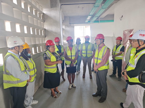 Ambassador Chu Maoming visited the construction site of the Goodwill Secondary School project, received a briefing on the construction progress of the project, and spoke highly of the efforts made by the China project team. Ambassador Chu stated that the school project for post-hurricane reconstruction lives up to the expectations of the government and all sectors of society in Dominica. He requested the project team to strictly ensure safety and quality, implement the project with high standards, and well serve the economic and social development of Dominica.