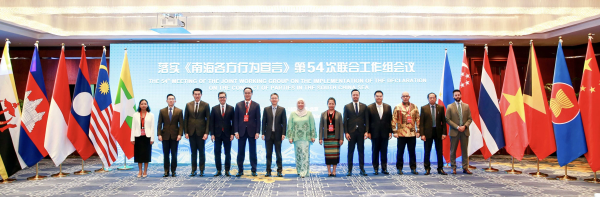 2026年4月17日至18日,中国和东盟十国在中国北京举行落实《南海各方行为宣言》第54次联合工作组会,继续推进“南海行为准则”磋商。会议由外交部边海司副司长檀勍生与马来西亚外交部海洋司司长阿迪娜共同主持。