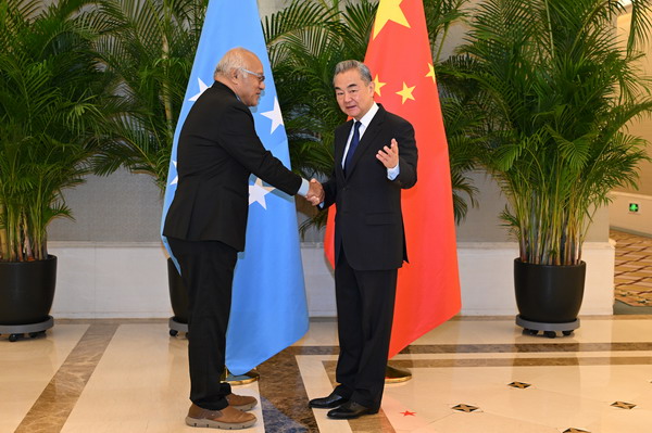 Ван И отметил, что с момента установления дипломатических отношений между Китаем и Федеративными Штатами Микронезии двустороннее сотрудничество постоянно развивалось, принося реальную пользу народу Микронезии. В апреле прошлого года председатель КНР Си Цзиньпин и президент Уэсли Симина достигли важного консенсуса по укреплению взаимного доверия и дружбы, а также углублению взаимовыгодного сотрудничества. Китай высоко ценит принятие Конгрессом Федеративных Штатов Микронезии резолюции в поддержку принципа «одного Китая» и верит, что микронезийская сторона будет продолжать твердо поддерживать справедливую позицию Китая в вопросах, касающихся Тайваня. Китай готов вместе с микронезийской стороной ускорить совместное строительство «Одного пояса, одного пути». Проект Национального конференц-центра Федеративных Штатов Микронезии, построенный при помощи Китая, был успешно передан, и демонстрация «Китайской орхидеи» стала одним из главных событий церемонии передачи, став ярким примером в истории двусторонних отношений. Китайская сторона готова и дальше расширять сотрудничество с микронезийской стороной в таких ключевых областях, как инфраструктура, борьба с изменением климата и морские научные исследования, углублять обмены в сферах образования, молодежи и межрегионального сотрудничества, способствуя постоянному развитию всеобъемлющего стратегического партнерства между Китаем и Федеративными Штатами Микронезии.