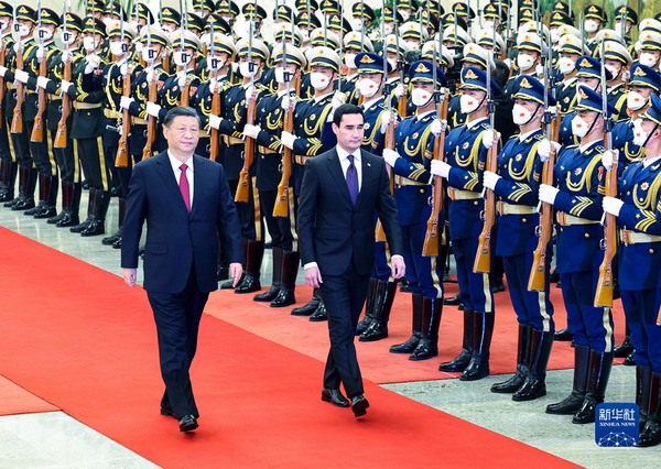 Перед началом переговоров Си Цзиньпин провел церемонию приветствия в честь Сердара Бердымухамедова в Северном зале Дома народных собраний.