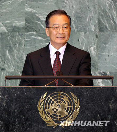 24 сентября 2008 г., на общеполитической дискуссии в рамках 63-й сессии Генеральной ассамблеи ООН, проходившей в штаб-квартире ООН в Нью-Йорке, премьер Госсовета КНР Вэнь Цзябао выступил с докладом на тему «Придерживаться политики реформ и открытости, неуклонно следуя по пути мирного развития», полный текст которого приводится ниже: