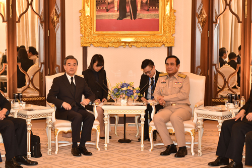 巴育表示,中泰关系建交以来发展平稳,合作成果显著。泰方坚持一个中国原则,愿进一步深化泰中全面战略伙伴关系。泰国钦佩中国发展成就,希望学习中国治国理政经验,将泰国4.0发展战略与“中国制造2025”深度对接,在“一带一路”框架下,深化两国务实合作。泰方支持中泰铁路项目,欢迎中国企业参与泰国东部经济走廊建设,希望中泰两国合作能带动整个次区域发展。泰方愿继续在东盟—中国、澜湄合作、亚太经合组织等框架下加强与中方的协调合作。巴育请王毅转达哇集拉隆功国王和他本人对中国领导人的诚挚问候。