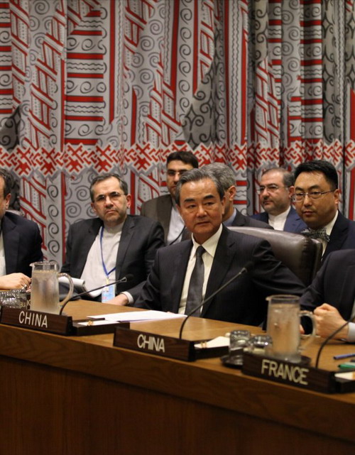 当地时间2017年9月20日,外交部长王毅在纽约联合国总部出席六国与伊朗外长会议。