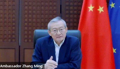 2020年9月17日,驻欧盟使团团长张明大使出席欧洲政策中心(EPC)举办的“60分钟吹风会”(Sixty Minute Briefing)系列活动之“中欧关系的前景与挑战”,并发表主旨演讲。张明大使全面介绍了中德欧领导人会晤成果,并就如何落实领导人共识、推进未来中欧关系发展提出建议。吹风会由EPC负责人、首席经济学家祖立格(Fabian Zuleeg)主持。实录如下: