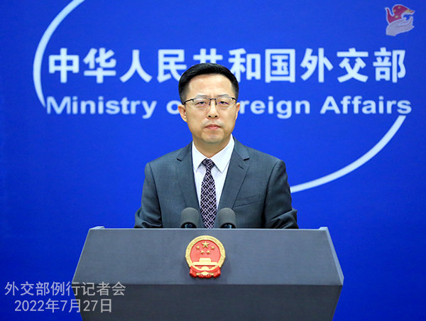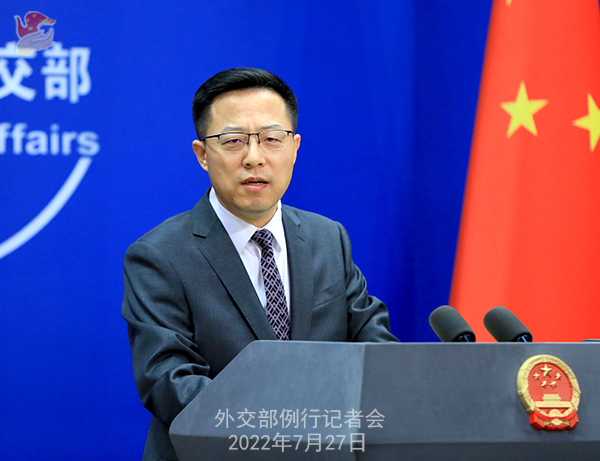 赵立坚:这几天你恐怕没来吧。我们已经多次表明坚决反对佩洛西众议长访台的严正立场。如果美方一意孤行,挑战中方底线,必将遭到坚决反制,由此引起的一切后果完全由美方承担。