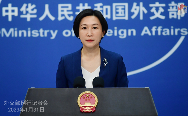 毛宁:1月30日,秦刚外长同荷兰副首相兼外交大臣胡克斯特拉通电话,就双边关系等问题深入交换意见。秦刚外长指出,“开放务实”是中荷关系的最大特色,双方要共同维护国际产业链供应链稳定,维护开放而非分裂、有序而非混乱的国际贸易环境。胡克斯特拉副首相兼外交大臣表示,荷方愿推动两国开放务实的全面合作伙伴关系不断发展,将继续以负责任方式处理对华经贸事宜。