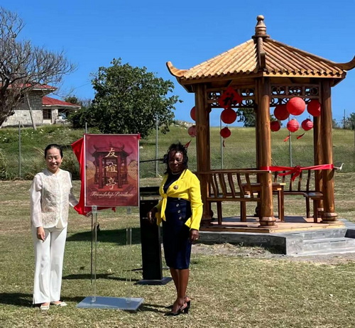 2026年3月3日,元宵佳节,驻安提瓜和巴布达使馆与当地阁下中学举行中式凉亭落成仪式。驻安提瓜和巴布达大使蒋薇、布莱德肖校长出席活动并致辞,安巴孔院外方院长格林—菲利普、中方院长温涵,以及该校师生代表参加活动。