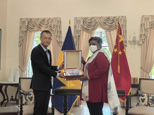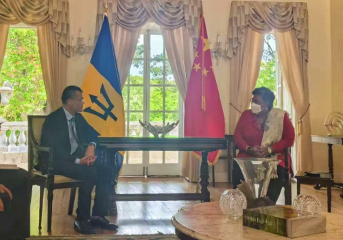 2025年9月17日,驻巴巴多斯大使郑冰开到任拜会巴总理莫特利。