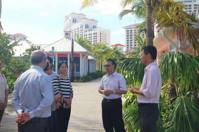 2016年10月8日,驻巴哈马大使黄亲国在飓风“马修”离开巴哈马后第一时间赶往巴哈玛大型度假村项目考察受灾情况。