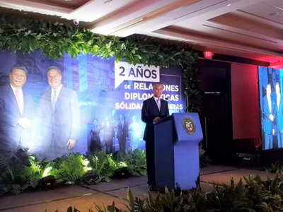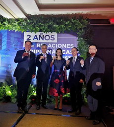 2019年6月13日晚,驻巴拿马使馆与巴拿马政府在巴拿马城共同举办庆祝中巴建交两周年招待会。巴方除巴雷拉总统、德圣马洛副总统兼外长及主要内阁部长出席外,7月1日即将就职的下届政府候任外长费雷尔、候任工商部长马丁内斯等政要也欣然应邀出席。此外,拉美议会主席卡斯蒂略、巴社会各界人士、外国驻巴使节、中资企业及华侨华人代表等300余人到场,共襄盛会。