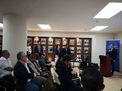2019年8月22日,驻巴拿马大使魏强应邀出席由巴拿马工商部主办的第二届中国国际进口博览会推介会,巴工商部外贸副部长索萨、中国银行巴拿马分行行长张岗、中远海运巴拿马公司总经理徐孜操、巴多家知名企业负责人与会。