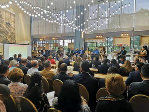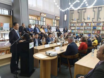 2019年8月26日,驻巴拿马大使魏强出席使馆与外交部公共外交代表团、巴外交官协会共同在拉美议会中国馆举办的“中国的发展与外交政策”主题研讨会。团长曾钢大使及代表团全体成员、巴外交官协会主席雷耶斯、拉美议会执行秘书卡斯蒂略、巴拿马外交部代表、巴拿马科技大学校长蒙特马约尔等80余人出席。