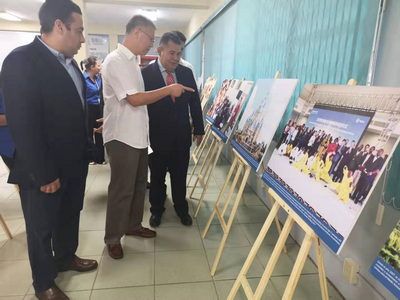 2019年9月12日下午,驻巴拿马使馆在埃雷拉省奇特雷市巴拿马大学阿苏艾罗校区举办“庆祝中华人民共和国成立70周年图片巡展”埃雷拉站开幕式。驻巴拿马大使魏强、埃雷拉省省长维克多、奇特雷市市长胡安、巴拿马大学阿苏艾罗校区校长哥亚多及师生共百余人出席。魏强大使在开幕式上发表讲话,全面介绍了中国人民在中国共产党领导下浴血奋斗、推翻三座大山、建立新中国和新中国成立70年来在政治民主、经济发展、社会民生、生态保护、文化事业等领域取得的辉煌成就。