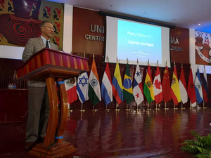 次日,魏大使出席了巴拿马大学阿苏艾罗校区举办的“水资源国际论坛”,并发表题为“水之精神”的演讲。他在演讲中指出上善若水,水象征着和平与连通,水之精神也契合着习近平主席提出的构建人类命运共同体的理念。中方愿与巴方一道,始终坚持平等互利、共同发展、合作共赢,愿中巴友谊乘共建“21世纪海上丝绸之路”的风帆破浪前行。来自中国福建海洋研究所的陈祤教授受邀参加论坛并发表题为“中国的渔业发展与水环境的保护”的演讲。