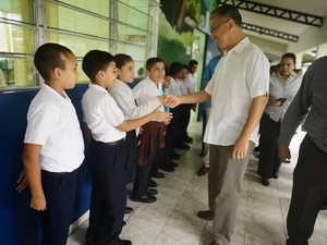 在埃雷拉省期间,魏大使再次赴当地伊波利托·佩雷斯·特略学校看望该校师生,并受邀参观了当地儿童合唱团。魏大使和同学们亲切互动交流,鼓励同学们努力学习,积极参与到中巴文化交流活动中,争当中巴文化交流的“小使者”。学校师生对于魏大使的到来倍感激动欣喜,对驻巴使馆的关心和支持深表感谢。