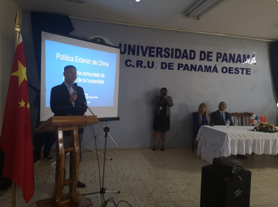 2019年9月24日上午,驻巴拿马大使魏强在巴拿马乔雷拉市巴拿马大学巴拿马省西部校区发表题为“中国外交政策-共建人类命运共同体”的演讲。该校区院长安东尼奥及师生代表共约200人出席。