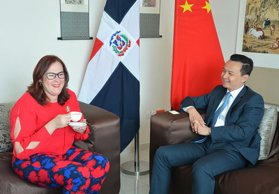 2018年12月14日,驻多米尼加大使张润会见到访的多米尼加妇女部长珍妮特·卡米洛,双方就两国开展妇女合作进行友好交流。