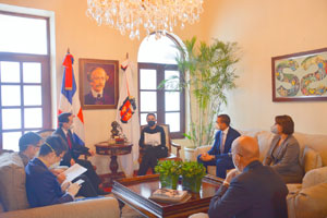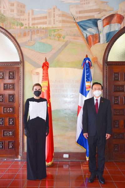 2020年5月11日,驻多米尼加大使张润赴多首都圣多明各市政厅拜会新任市长卡洛琳娜,并共同出席湖南省及驻多米尼加使馆抗疫物资捐赠仪式。中资企业协会主席马国强、华侨总会主席岑高峰、中国之家主席阿兰塞纳等在场。